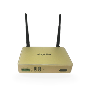 MagicBox 集工业数据采集功能和本地监控显示终端于一体,它通过RS-485采集本地设备数据,或通过以太网(RJ-45)、Wi-Fi和4G获取云端服务器数据,并通过显示器、投影仪、拼接屏等将监控数据展示出来。