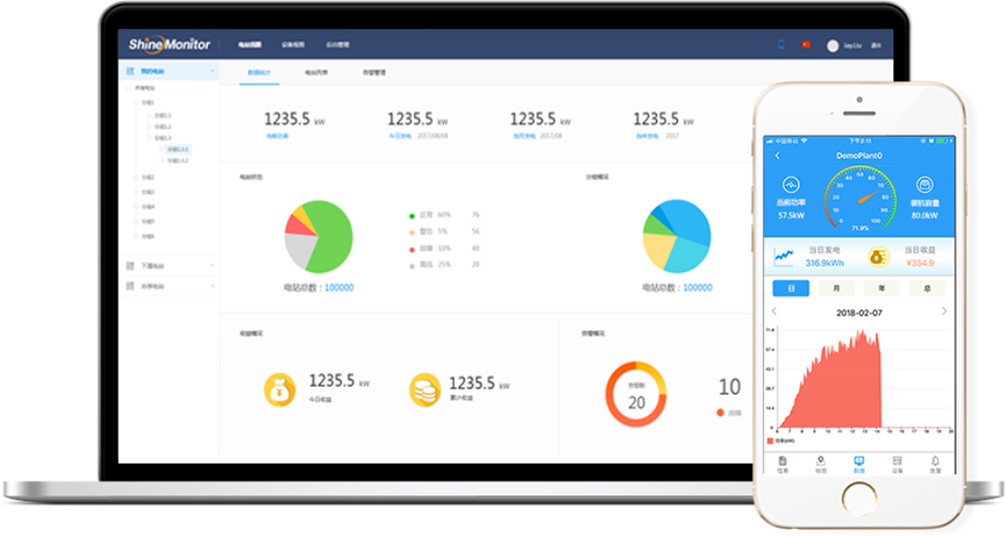针对以上光伏监控行业痛点,益邦阳光研发团队致力于光伏监控行业,自行研发了可兼容多种类型不同品牌的数据采集器以及功能强大的护光者光伏监控系统。对光伏行业相关设备进行实时监测和控制,实现了对光伏发电站的远程在线监测、跟踪、状态确认和控制及高效节能运行。从而提高光伏电站设备的资源利用率和生产力水平,有效提高设备运行安全性、任务可靠性以及降低系统全寿命周期费用,有利于预防光伏发电设备恶性事故发生、避免人身伤亡及巨大经济损失。